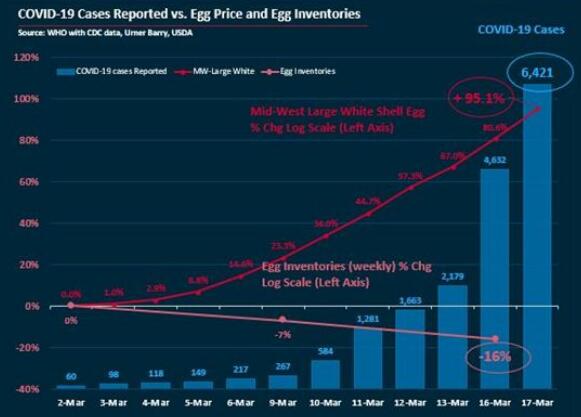 Moscoqiuri感嘆道:“新冠肺炎Covid-19對(duì)美國(guó)的影響是前所未見(jiàn)的,從來(lái)沒(méi)見(jiàn)過(guò)如此的市場(chǎng)景象;2015年禽流感的爆發(fā),對(duì)市場(chǎng)的影響僅僅限于供應(yīng)端,可這次的新冠疫情,就好像摁下了一個(gè)開(kāi)關(guān),突然之間整個(gè)國(guó)家都在搶購(gòu)雞蛋和生活物資?!?br>