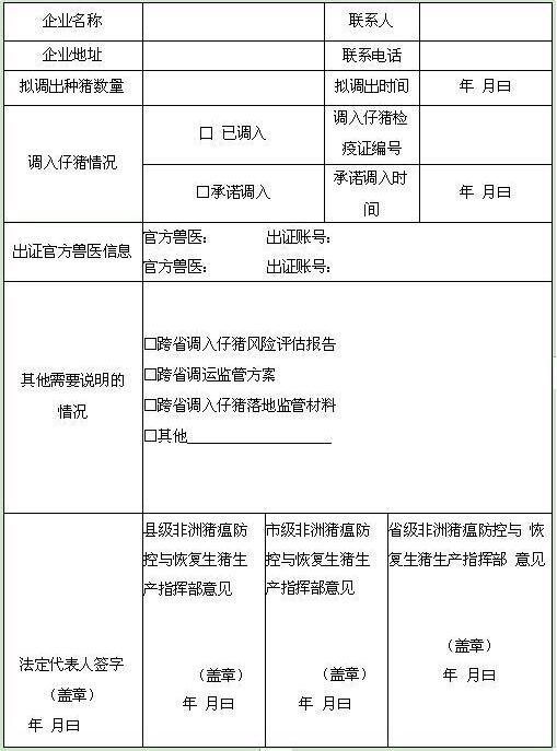 跨省調(diào)出種豬備案表
