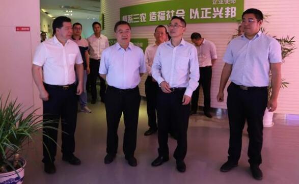 簽約前,章國華行長一行參觀正邦集團(tuán)展廳