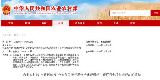 今年以來,全國先后發(fā)生多起因違法違規(guī)調運生豬引發(fā)非洲豬瘟疫情的案件,性質惡劣,風險巨大。為進一步規(guī)范生豬調運秩序,有效防范運輸環(huán)節(jié)傳播風險,維護生豬生產加快恢復勢頭,在農業(yè)農村部門當前正在開展的違法違規(guī)調運生豬行為專項整治基礎上,農業(yè)農村部、交通運輸部、公安部決定從6月初至9月上旬,在全國集中開展違法違規(guī)調運生豬百日專項打擊行動(以下簡稱“百日行動”)?,F(xiàn)就有關事項通知如下。