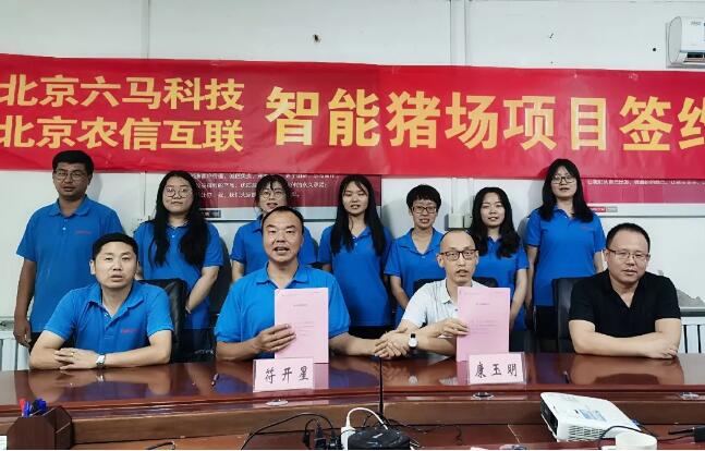 2020年7月1日,六馬科技與農(nóng)信互聯(lián)在北京六馬順義基地完成智能豬場(chǎng)項(xiàng)目簽約儀式。六馬科技董事長(zhǎng)符開(kāi)星、副總裁王紅梅、工程部副總經(jīng)理李亮、采購(gòu)部總監(jiān)陳曉董,農(nóng)信互聯(lián)華北大區(qū)總經(jīng)理康玉明、華北大區(qū)綜合服務(wù)部經(jīng)理劉征等代表共同出席了此次簽約儀式。