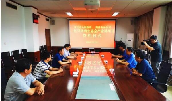 7月22日,安丘市與南洋食品公司就一億只肉雞生態(tài)全產(chǎn)業(yè)鏈項目進行簽約,市委副書記、市長賈勤清出席簽約儀式并講話,副市長謝謙彪代表市政府與南洋食品公司簽約。