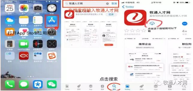 A、蘋果用戶:前往蘋果商店,搜索“牧通人才網(wǎng)”,下載更新;