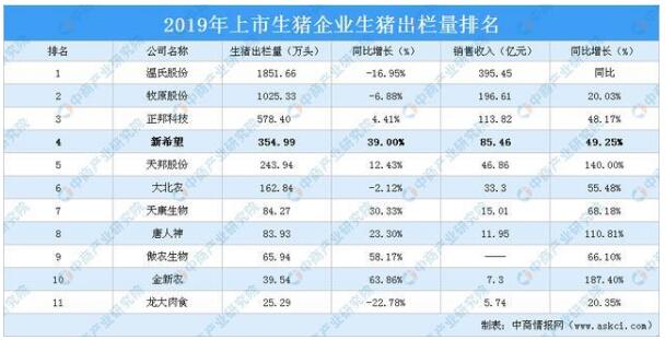 新希望是一家擁有飼料、養(yǎng)殖、屠宰、食品深加工、商貿(mào)一體化的全產(chǎn)業(yè)鏈的公司。新希望自2016年以來(lái)大力布局生豬養(yǎng)殖業(yè),生豬出欄量3年翻了3倍,增長(zhǎng)快速,未來(lái)的成長(zhǎng)空間比較大。據(jù)去年財(cái)報(bào)數(shù)據(jù)顯示,2019年新希望生豬出欄量達(dá)到了354.99萬(wàn)頭,同比增長(zhǎng)39%,位居生豬上市企業(yè)生豬出欄量第四位。去年全年實(shí)現(xiàn)生豬銷售收入85.46億元,同比增長(zhǎng)49.25%。今年新希望加大在生豬養(yǎng)殖業(yè)務(wù),預(yù)計(jì)今年生豬出欄量將大增。