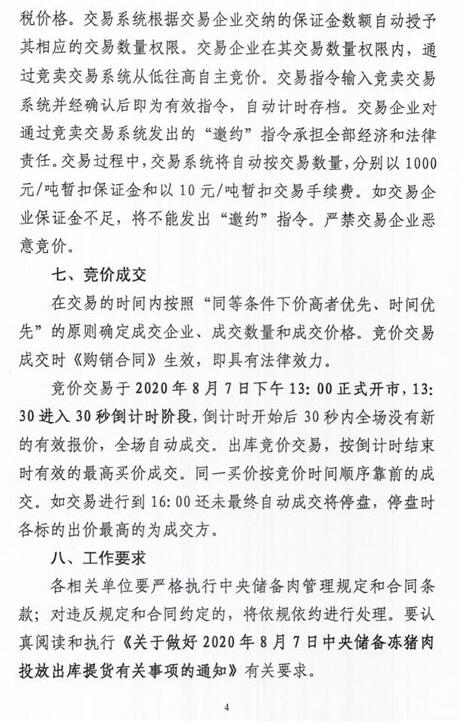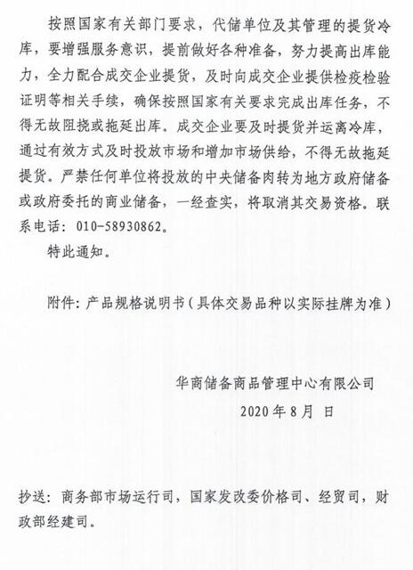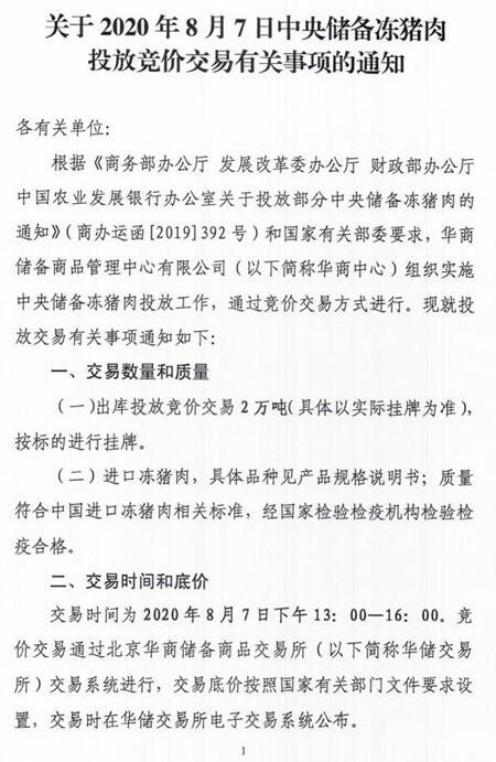 華儲網(wǎng)8月4日發(fā)布中央儲備凍豬肉投放競價交易有關(guān)事項的通知,將競價交易2萬噸,交易時間為2020年8月7日下午13時至16時,這是今年以來第26批投放的中央儲備凍豬肉,累計投放量將達49萬噸。