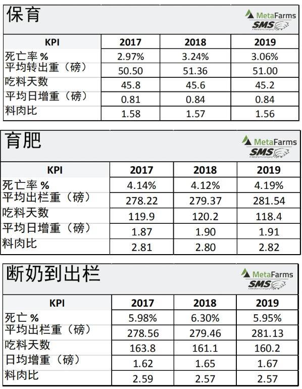 近日,美國國家豬肉委員會(huì)(NPB)發(fā)布一項(xiàng)新的研究報(bào)告:《美國豬肉產(chǎn)業(yè)生產(chǎn)分析概要:2017-2019(Production Analysis Summary for U.S. Pork Industry: 2017-2019)》。該報(bào)告總結(jié)了2017年到2019年美國養(yǎng)豬產(chǎn)業(yè)中一些關(guān)鍵績效指標(biāo)(KPI)數(shù)據(jù),生產(chǎn)階段涵蓋母豬、保育豬、育肥豬、斷奶到育肥,數(shù)據(jù)類型涵蓋平均值、走勢值和標(biāo)桿值。