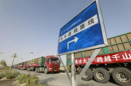10月10日上午,第一輛運載著39頭新西蘭荷斯坦小母牛的專用車輛,緩緩駛?cè)敫拭C農(nóng)墾天牧乳業(yè)有限公司。據(jù)悉,肩負這批基礎(chǔ)母牛運輸任務(wù)的90余輛卡車車隊已全部從天津隔離場啟程,經(jīng)過近40個小時、1800公里的行程,抵達位于河西走廊的甘肅農(nóng)墾天牧乳業(yè)有限公司。3500頭基礎(chǔ)母牛將在這塊戈壁灘上的黃金牧場安家落戶。至此,該公司基礎(chǔ)母牛存欄達到12800頭。