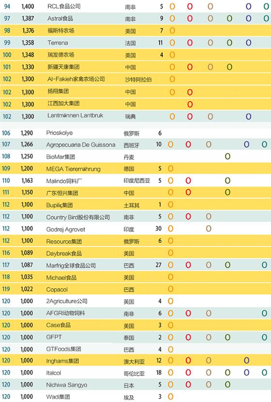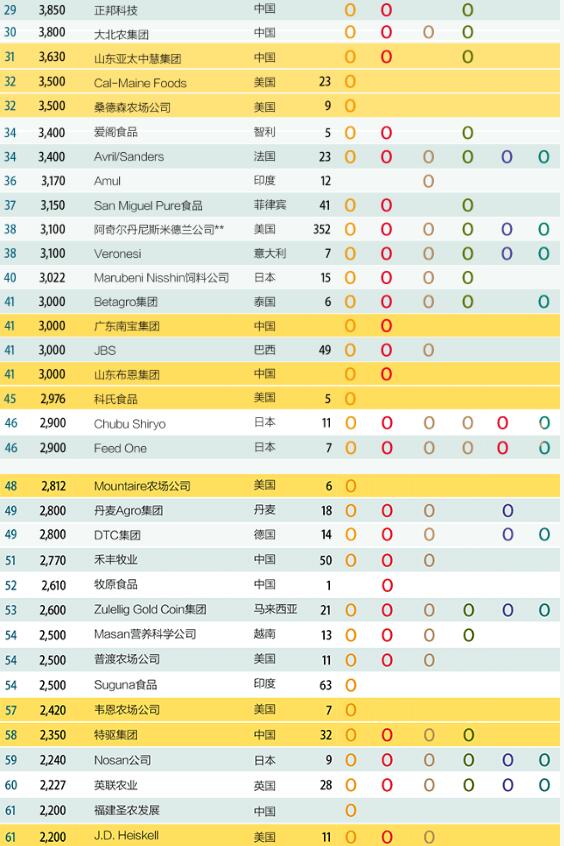全球頂尖飼料企業(yè)年度報(bào)告顯示,2019年上榜的全球復(fù)合動(dòng)物飼料生產(chǎn)公司的飼料產(chǎn)量均達(dá)到或超過100萬噸。