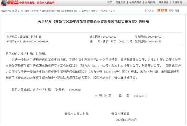 青島市2020年度生豬養(yǎng)殖企業(yè)貸款貼息項(xiàng)目實(shí)施方案