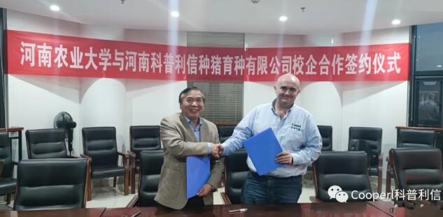 左:河南農(nóng)大動(dòng)物科技學(xué)院院長(zhǎng)李明 右:科普利信中國(guó)技術(shù)總監(jiān)Arnaud Hercé(阿諾)