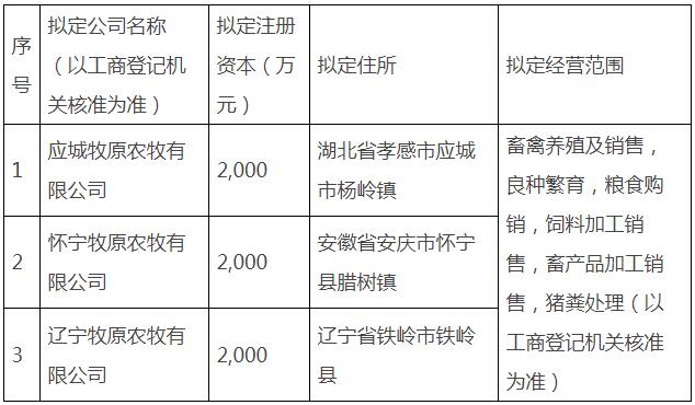 牧原股份11月25日公布關(guān)于在應(yīng)城市、懷寧縣、鐵嶺縣設(shè)立子公司的公告。