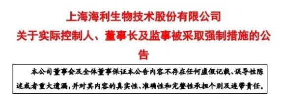 董事長(zhǎng)、監(jiān)事紛紛被采取強(qiáng)制措施 海利生物:董事長(zhǎng)仍然能履職