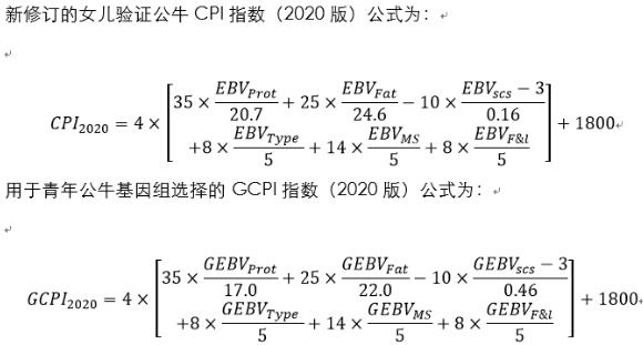 2020年中國奶業(yè)協(xié)會(huì)育種專業(yè)委員會(huì)對(duì)中國奶牛性能指數(shù)(CPI)公式進(jìn)一步優(yōu)化,調(diào)整后各類性狀的加權(quán)值分別為:生產(chǎn)性狀60%,體型性狀30%,健康性狀10%。在重視產(chǎn)奶性狀改進(jìn)的同時(shí),加強(qiáng)對(duì)生產(chǎn)效益具有重要影響的體型性狀的選育。指數(shù)的系數(shù)和常數(shù)項(xiàng)進(jìn)行了重新調(diào)整,保證了指數(shù)值的穩(wěn)定性。