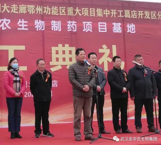 戢局長在致辭中指出,作為一家集研發(fā)、生產(chǎn)、銷售和技術(shù)服務(wù)為一體的專業(yè)從事動保制藥領(lǐng)域的科創(chuàng)型企業(yè),武漢金華農(nóng)生物制藥基地達(dá)產(chǎn)后,將為開發(fā)區(qū)經(jīng)濟(jì)社區(qū)發(fā)展增添新力量注入新活力。無論是建設(shè)還是建成運營,開發(fā)區(qū)將充分發(fā)揮“店小二”精神,為武漢金華農(nóng)生物公司提供優(yōu)質(zhì)、高效的服務(wù),確保項目早日盈利見效!期待企業(yè)在建設(shè)管理過程中,不斷加大技術(shù)投入,提升產(chǎn)品競爭力,爭取早日打造成為全國動保制藥行業(yè)的標(biāo)桿。