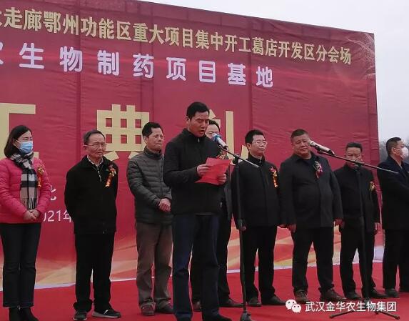 上午10點58分,程貴華主任莊重宣布:武漢金華農(nóng)生物制藥項目基地開工!