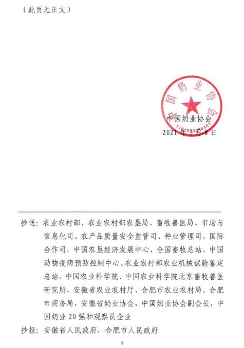 “十四五”時期是我國在全面建成小康社會、實現(xiàn)第一個百年奮斗目標之后,乘勢而上開啟全面建設社會主義現(xiàn)代化國家新征程、向第二個百年奮斗目標進軍的第一個五年。2021年是“十四五”開局之年,在“兩個一百年”歷史交匯點上,為深入貫徹落實黨和國家領(lǐng)導人有關(guān)講話指示和十九屆五中全會精神,在農(nóng)業(yè)農(nóng)村部、安徽省人民政府的鼎力支持下,中國奶業(yè)協(xié)會將圍繞“全面總結(jié)‘十三五’奶業(yè)成就,系統(tǒng)謀劃‘十四五’戰(zhàn)略發(fā)展”,擬定于2021年7月中旬在合肥市召開第十二屆中國奶業(yè)大會暨2021中國奶業(yè)展覽會和2021中國奶業(yè)20強(D20)峰會,按照國家第十四個五年規(guī)劃總體要求,貫徹新發(fā)展理念,開創(chuàng)新發(fā)展格局,促進奶業(yè)全面振興,推動奶業(yè)高質(zhì)量發(fā)展,為全面建設現(xiàn)代化奶業(yè)開好局、起好步?,F(xiàn)將有關(guān)事宜通知如下: