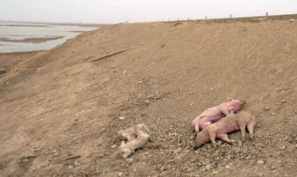 △“國堤”內(nèi)側(cè)的一堆死豬