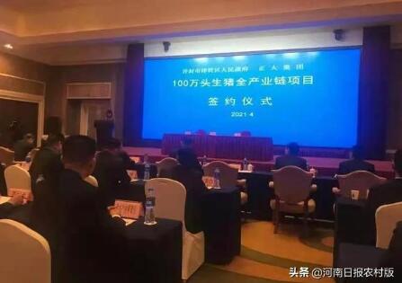 4月14日,總投資約34億元的正大集團(tuán)100萬頭生豬全產(chǎn)業(yè)鏈項(xiàng)目正式落戶開封市祥符區(qū)。據(jù)悉,該項(xiàng)目包括100萬頭生豬養(yǎng)殖、100萬頭生豬屠宰及食品加工、正大食品連鎖專賣項(xiàng)目、標(biāo)準(zhǔn)化生態(tài)循環(huán)種植基地項(xiàng)目等,計(jì)劃3年時(shí)間內(nèi)完成項(xiàng)目建設(shè)。
