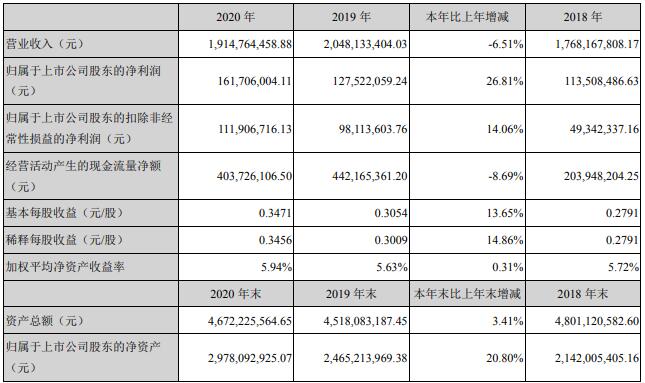 報告期內(nèi)經(jīng)營活動產(chǎn)生的現(xiàn)金流量凈額為403,726,106.50元,截至2020年末歸屬于上市公司股東的凈資產(chǎn)2,978,092,925.07元。
