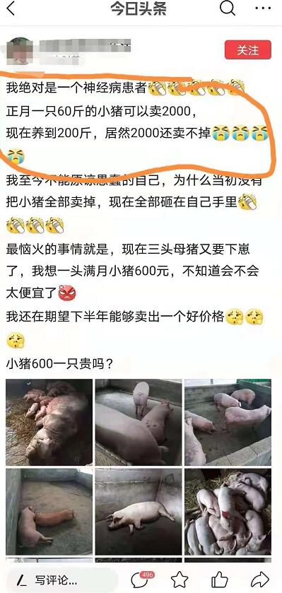 過去幾個月的壓欄是群體性行為,不是偶然現(xiàn)象,居然出現(xiàn)了1000斤肥豬,400-500斤的很常見,所有的群體性行為都會導致影響的集中放大,所以,上訪可以,群體上訪要打擊,就是這個道理;踩踏式集中拋售也是群體性行為。群體性行為受網(wǎng)絡(luò)漫天飛的消息影響最大,越是散戶受影響越大,大企業(yè)通常會派人進行市場調(diào)查。調(diào)查的越全面,受影響越小。壓欄的群體性行為會導致短期價格上漲,拋售的群體性行為會導致短期暴跌。大家可以以這個觀點回顧一下2019年以來的歷史,發(fā)現(xiàn)規(guī)律。