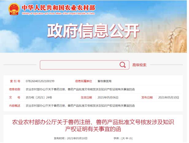 近期,我部收到多家企業(yè)來函,咨詢新獸藥注冊、獸藥產(chǎn)品批準文號核發(fā)與知識產(chǎn)權(quán)證明文件相關(guān)的問題。經(jīng)研究,現(xiàn)就有關(guān)事宜說明如下。