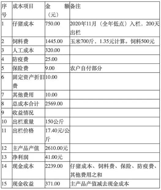 2021年5月中旬生豬出欄成本收益情況表