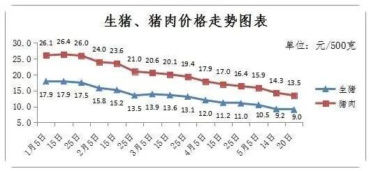(一)年初以來生豬價格小幅上漲,而后開始逐月走低。年初在節(jié)日效應(yīng)、豬肉季節(jié)性消費旺季拉動下,生豬市場價格出現(xiàn)反彈行情,價格短暫沖高,在1月13日全省平均價格達到今年最高點17.89元(每500克,單位下同),而后價格逐月走低。目前已跌入9元區(qū)間,重新恢復(fù)到2019年7月水平,今日全省平均價格(20日)為9.01元,較年初高點下降49.63%,同比下降33.06%。