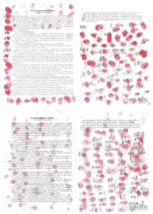 (當(dāng)?shù)仞B(yǎng)殖戶、村民、供應(yīng)商聽到襄大集團是黑社會后,紛紛站出來請愿。以上僅為部分圖)