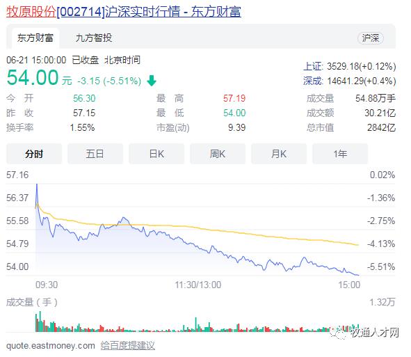 牧原股份再次下跌5.51%。截至收盤(pán),其股價(jià)為54元,總市值為2842億元。從6月10日至今,牧原股份連續(xù)走出了7連陰的行情,創(chuàng)年內(nèi)新低。