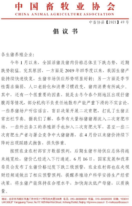 日前,中國(guó)畜牧業(yè)協(xié)會(huì)發(fā)布倡議書(shū),希望大家多關(guān)注農(nóng)業(yè)農(nóng)村部官網(wǎng)發(fā)布的生豬生產(chǎn)和市場(chǎng)數(shù)據(jù),不要恐慌不要聽(tīng)信謠言;繼續(xù)把疫情防控?cái)[在突出位置;建議養(yǎng)豬人加快淘汰低產(chǎn)母豬,特別是淘汰留作種用的三元肥豬,提高母豬繁殖效率,提高飼料轉(zhuǎn)化率,增強(qiáng)競(jìng)爭(zhēng)力。