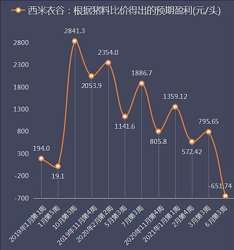 養(yǎng)豬行業(yè)從5月第3周開(kāi)始預(yù)虧,到6月第3周已經(jīng)是連續(xù)五周預(yù)虧,五個(gè)周預(yù)虧金額依次為132.66元、202.68元 、309.54元、538.01元和651.74元,虧幅連續(xù)擴(kuò)大。