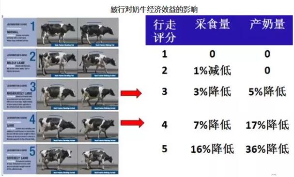 我們做法是在回牛通道上,逐一評(píng)定,每周一次,對(duì)行走評(píng)分2分以上的牛只做好記錄、重點(diǎn)檢查,在評(píng)分的過(guò)程中還要標(biāo)記出疑似病蹄(當(dāng)奶牛一條前肢患病承載體重時(shí),它需把頭揚(yáng)起來(lái),健康肢蹄落地時(shí)頭部低下。如果有一條后肢患病承載體重時(shí)頭部低下,健康肢落地時(shí)頭部抬起),為接下來(lái)的蹄部檢查做好鋪墊,我牧場(chǎng)采用金寶評(píng)分法。