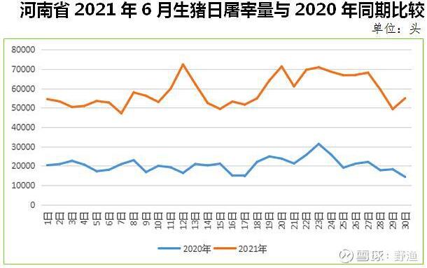 2021年6月份日均生豬屠宰量為58,575頭,與今年5月份日均屠宰量52,195比較,增加6,380頭,環(huán)比增幅12.22%;與去年同期日屠宰量20,543頭相比,增加38,032頭。
