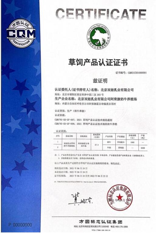 洛娃集團(tuán)向新京報(bào)記者提供的資料顯示,其旗下北京雙娃乳業(yè)有限公司位于呼倫貝爾阿榮旗三號(hào)店林場(chǎng)的放牧場(chǎng)于今年6月拿到了草飼產(chǎn)品的認(rèn)證證書(shū),認(rèn)證牧場(chǎng)范圍為666.66公頃,草飼奶牛規(guī)模為700頭;位于阿榮旗霍爾奇雙牛場(chǎng)的雙娃草飼奶牛養(yǎng)殖基地,認(rèn)證范圍為27.5公頃,認(rèn)證草飼奶牛1000頭、草飼奶產(chǎn)量6500噸。此外,雙娃乳業(yè)呼倫貝爾草飼乳粉加工廠合計(jì)1600噸產(chǎn)量的嬰幼兒奶粉,也獲得了方圓草飼產(chǎn)品認(rèn)證證書(shū)。