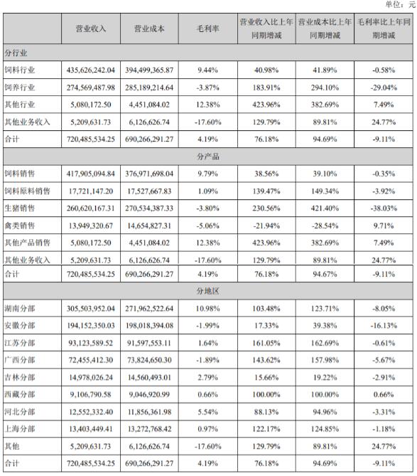 公司生豬養(yǎng)殖業(yè)務(wù)的主要經(jīng)營模式為自繁自養(yǎng)模式和“公司+農(nóng)戶”合同養(yǎng)殖模式。自繁自養(yǎng)模式側(cè)重于仔豬的繁育和銷售,公司直接進行生產(chǎn)全過程管理并承擔(dān)相應(yīng)風(fēng)險。自繁自養(yǎng)模式在成本控制及生物安全防控等方面優(yōu)勢較明顯,但固定資產(chǎn)投入偏大,資金要求較高。