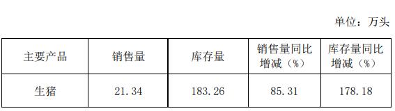 2021年1-8月,公司累計銷售生豬172.53萬頭,銷售量同比增長160.96%。