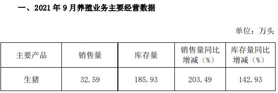傲農(nóng)生物10月8日發(fā)布9月養(yǎng)殖業(yè)務(wù)主要經(jīng)營(yíng)數(shù)據(jù)公告