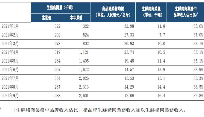 中糧家佳康10月11日公布9月運(yùn)營快報(bào)。公司9月生豬出欄量28.8萬頭,本年累計(jì)生豬出欄量260.1萬頭;商品豬銷售均價(jià)人民幣12.06元/公斤,生鮮豬肉銷量1.64萬噸,生鮮豬肉業(yè)務(wù)中品牌收入占比為32.8%。