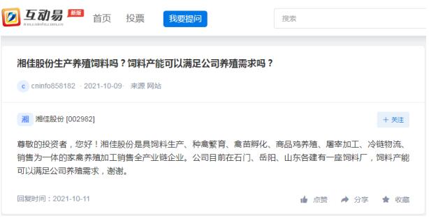 湘佳股份:在石門、岳陽、山東各建有一座飼料廠飼料產(chǎn)能可以滿足公司養(yǎng)殖需求