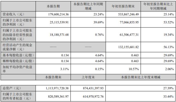 10月26日,曉鳴股份發(fā)布2021年三季報(bào),公司2021年1-9月實(shí)現(xiàn)營(yíng)業(yè)收入5.34億元,同比增長(zhǎng)25.14%,歸屬于上市公司股東的凈利潤(rùn)為7706.69萬(wàn)元,同比增長(zhǎng)53.52%,每股收益為0.4630元。