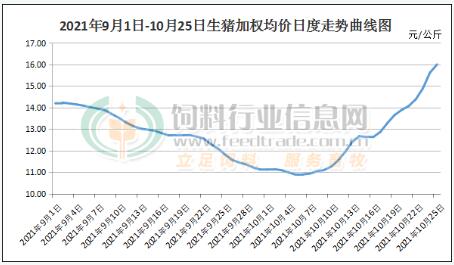根據(jù)飼料行業(yè)信息網(wǎng)慧通數(shù)據(jù)研究部統(tǒng)計(jì)數(shù)據(jù)顯示,國(guó)慶假期的最后兩天開(kāi)始豬價(jià)出現(xiàn)了瘋漲行情,從10月5日的10.88元/公斤一口氣就沖到了16元/公斤,尤其是最近兩天漲幅特別明顯,上周日日均漲幅達(dá)1元/公斤左右。而生豬期貨市場(chǎng)的反應(yīng)要早于現(xiàn)貨市場(chǎng),從9月24日開(kāi)始,生豬期貨市場(chǎng)就出現(xiàn)上漲行情。從上圖生豬2201主力合約的走勢(shì)我們就可以看出,且在10月11日多個(gè)生豬期貨合約出現(xiàn)2021年1月上市以來(lái)的首次漲停,在10月25日早盤(pán)再度出現(xiàn)漲停,同時(shí)大部分上市養(yǎng)殖企業(yè)雖三季度預(yù)報(bào)大幅虧損,但最近的股價(jià)也隨豬價(jià)反彈上漲。