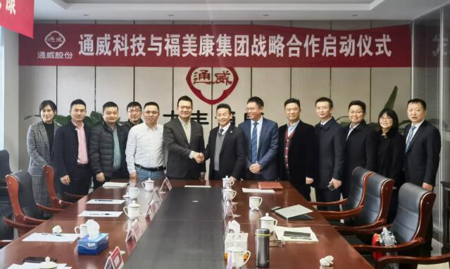 劉董事長(zhǎng)表示,漁美康從事動(dòng)保8年,致力于改變中國(guó)水產(chǎn)動(dòng)保經(jīng)營(yíng)方式,以科技引領(lǐng)動(dòng)保發(fā)展。現(xiàn)在成立福美康集團(tuán),主要經(jīng)營(yíng)功能料與高端料,劉董事長(zhǎng)分析了飼料過(guò)去和未來(lái)發(fā)展模式的變化,認(rèn)為未來(lái)水產(chǎn)飼料一定是“飼料+動(dòng)保+功能料”的格局,目前已經(jīng)在華南、華東、華中布局三個(gè)基地,福美康飼料堅(jiān)持走一條行業(yè)內(nèi)不同于其它競(jìng)爭(zhēng)對(duì)手的道路。劉董事長(zhǎng)非常敬佩通威董事局劉漢元主席的情懷,堅(jiān)持致力于農(nóng)業(yè)、光伏板塊,希望福美康利用自身技術(shù)、團(tuán)隊(duì)優(yōu)勢(shì),通過(guò)與通威合作,借助通威39年的實(shí)力與資源,成為動(dòng)物營(yíng)養(yǎng)公司的標(biāo)桿客戶,合作共贏,必將擁有美好未來(lái)。