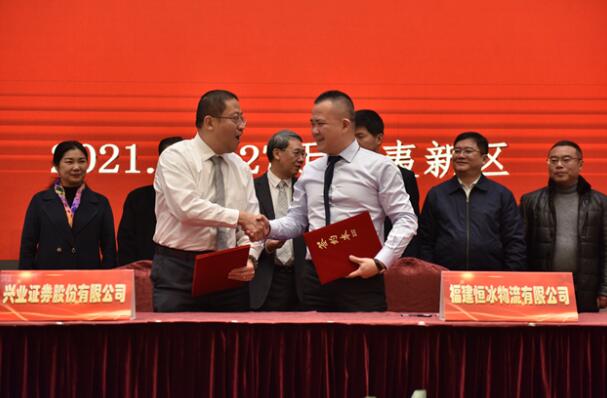 12月27日,圣農(nóng)集團旗下福建恒冰物流有限公司IPO上市啟動會在武夷新區(qū)召開,圣農(nóng)董事兼常務(wù)副總裁陳劍華與興業(yè)證券股份有限公司副總裁孔祥杰代表雙方簽訂上市合作協(xié)議,南平市委常委、常務(wù)副市長張朝陽,圣農(nóng)董事長傅光明,常務(wù)副總裁陳榕、周紅,恒冰物流總經(jīng)理孔祥敏等高管,和興業(yè)證券股份有限公司黨委書記、董事長楊華輝,見證了簽約儀式。