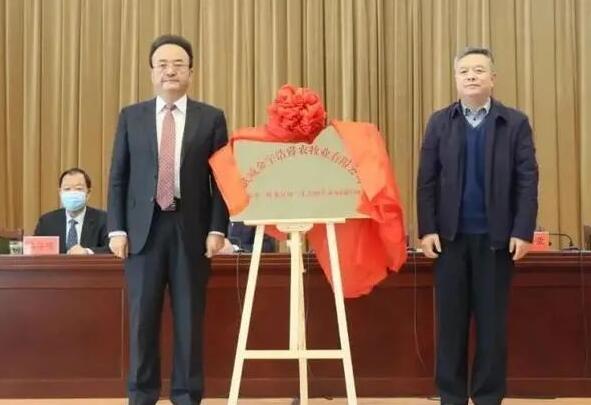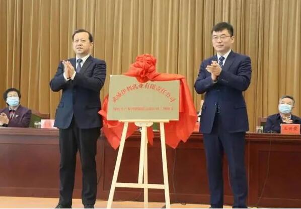 市委副書記、市長王國斌與省農(nóng)業(yè)農(nóng)村廳黨組成員、省畜牧獸醫(yī)局局長王興榮為武威金宇浩睿5萬頭“牧光互補(bǔ)”生態(tài)奶牛養(yǎng)殖園區(qū)項目揭牌。