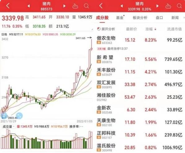 國泰君安證券表示,本輪豬周期的價格拐點預計在2022年4月到6月。在一季度豬價較低的背景下,生豬去產(chǎn)能有望加速。市場對豬周期反轉的預期強化,催化近期的板塊表現(xiàn)。