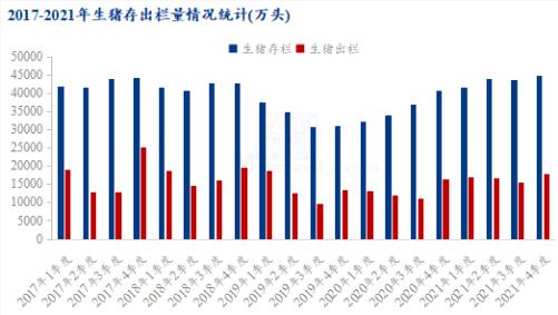 圖1 2017-2021年生豬存出欄量情況統(tǒng)計(jì)