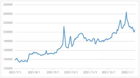近期生豬屠宰量連續(xù)多日維持高位,反映出春節(jié)前生豬供給較為充裕,養(yǎng)殖端雖有壓欄挺價動作,但在供大于需的情況下,收效甚微,因此預計豬價在春節(jié)期間上漲幅度有限,但是在養(yǎng)殖成本線下,豬價進一步下跌的空間亦十分有限。上半年影響豬價走勢的因素主要有:新冠疫情對于下游消費的影響、生豬產能去化的速度以及飼料價格對于養(yǎng)殖成本的影響。當前多空形勢較為模糊,建議投資者謹慎交易。