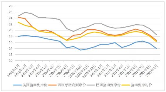 圖表:不同國家進口凍肉到岸價格(元/公斤)數據來源:海關總署,光大期貨研究所