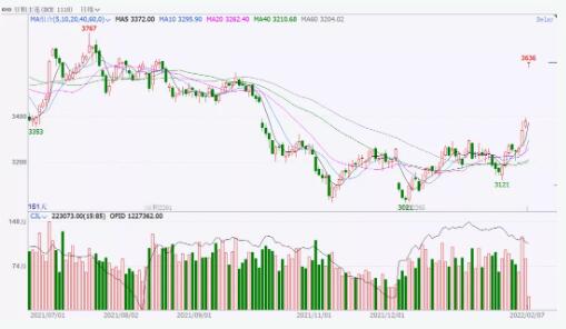 受春節(jié)假期美盤豆類強(qiáng)勁上漲走勢帶動(dòng),鄭州菜粕期貨強(qiáng)勢上漲,主力合約期價(jià)再創(chuàng)上市以來新高3445元/噸,5月合約收盤大漲8.39%,菜粕近月3個(gè)月合約均觸及漲停價(jià)位。
