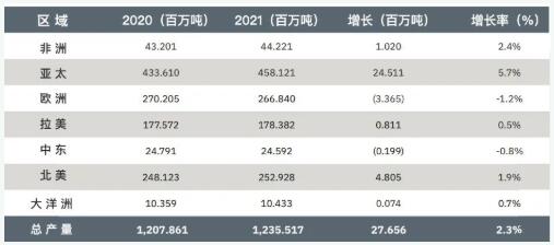 美國(guó)仍穩(wěn)居第二,產(chǎn)量為2.32億噸,同比增長(zhǎng)2.1%;